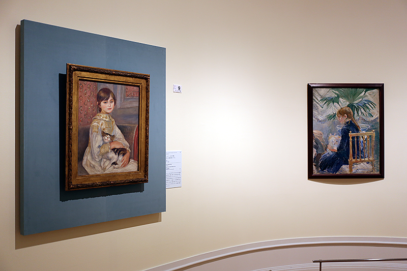 (左から)ピエール=オーギュスト・ルノワール《ジュリー・マネの肖像、あるいは猫を抱く子ども》 / ベルト・モリゾ《犬を抱く娘》
