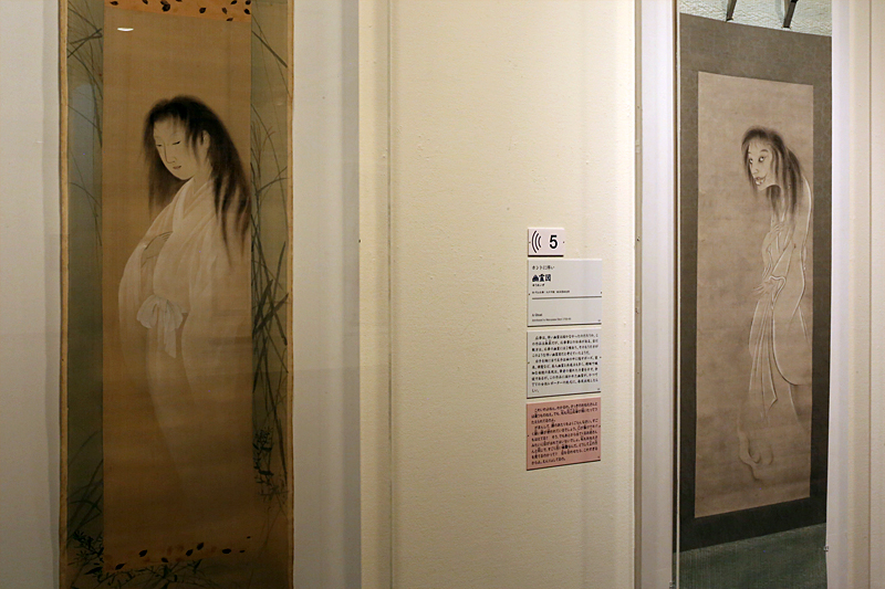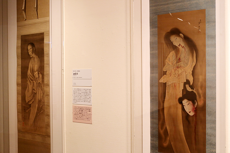 幽霊の掛け軸がずらりと並ぶ会場は圧巻