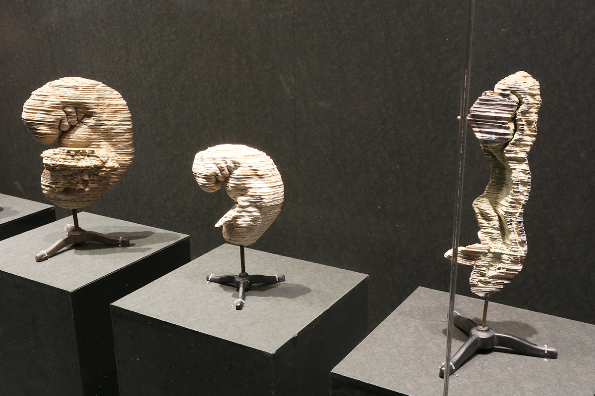 「ヒト胚の成長模型」 左から CS13(受精後32日目)、CS12(同30日目)、CS10(同28日目)