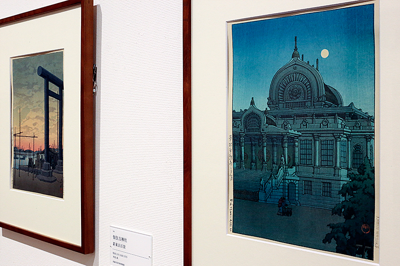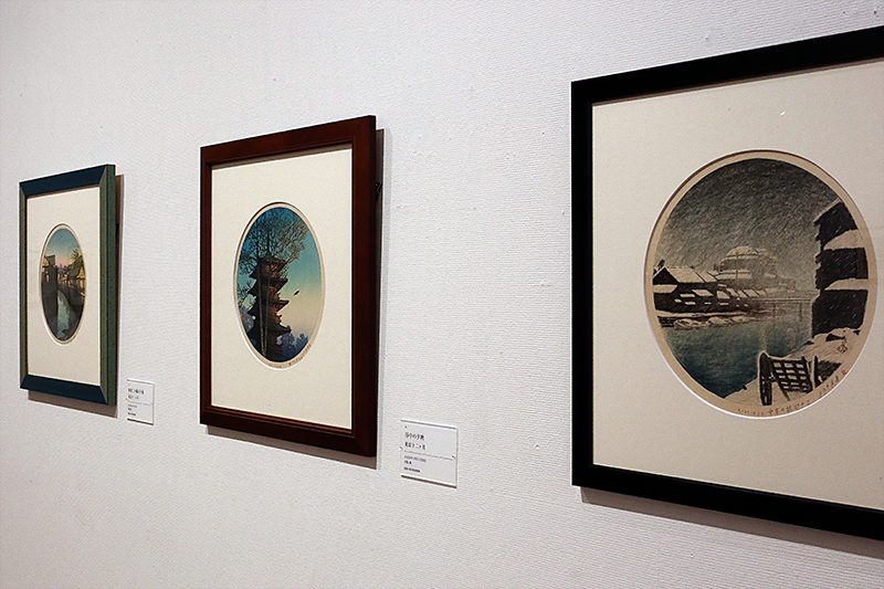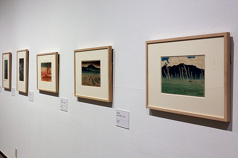 オーストリア人のフリッツ・カペラリ、山村耕花、名取春仙、吉田博らの作品とともに、巴水が感銘を受けた伊東深水の「近江八景」シリーズも展示されています。