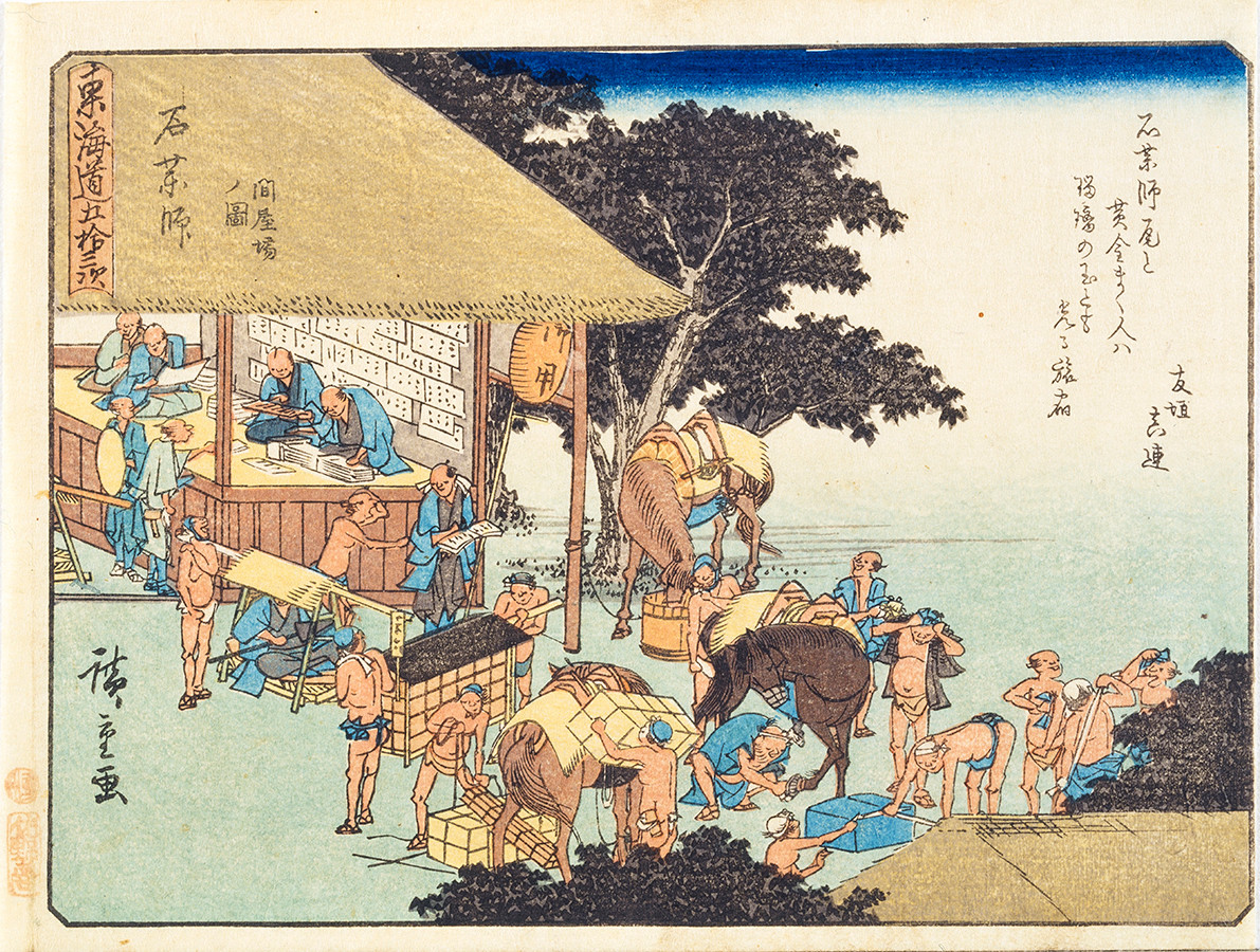 《東海道五拾三次 石薬師 問屋場ノ図》 歌川広重 判型:中判錦絵 制作年:天保11年(1840)頃