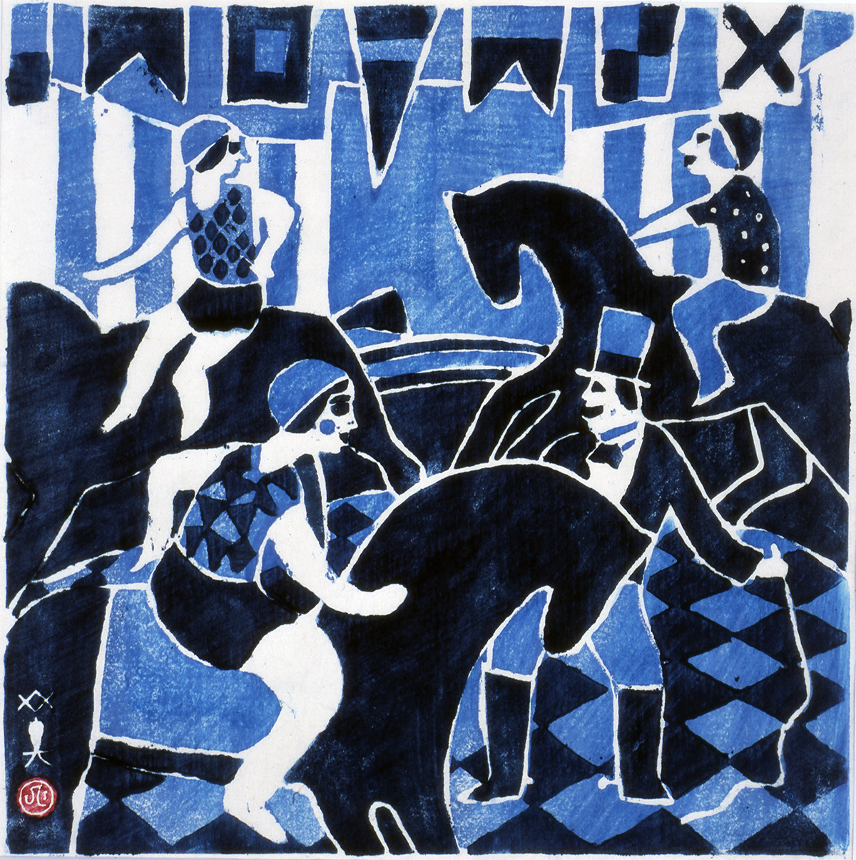 《曲馬(藍摺)》 川西 英 1929年 木版色摺・紙