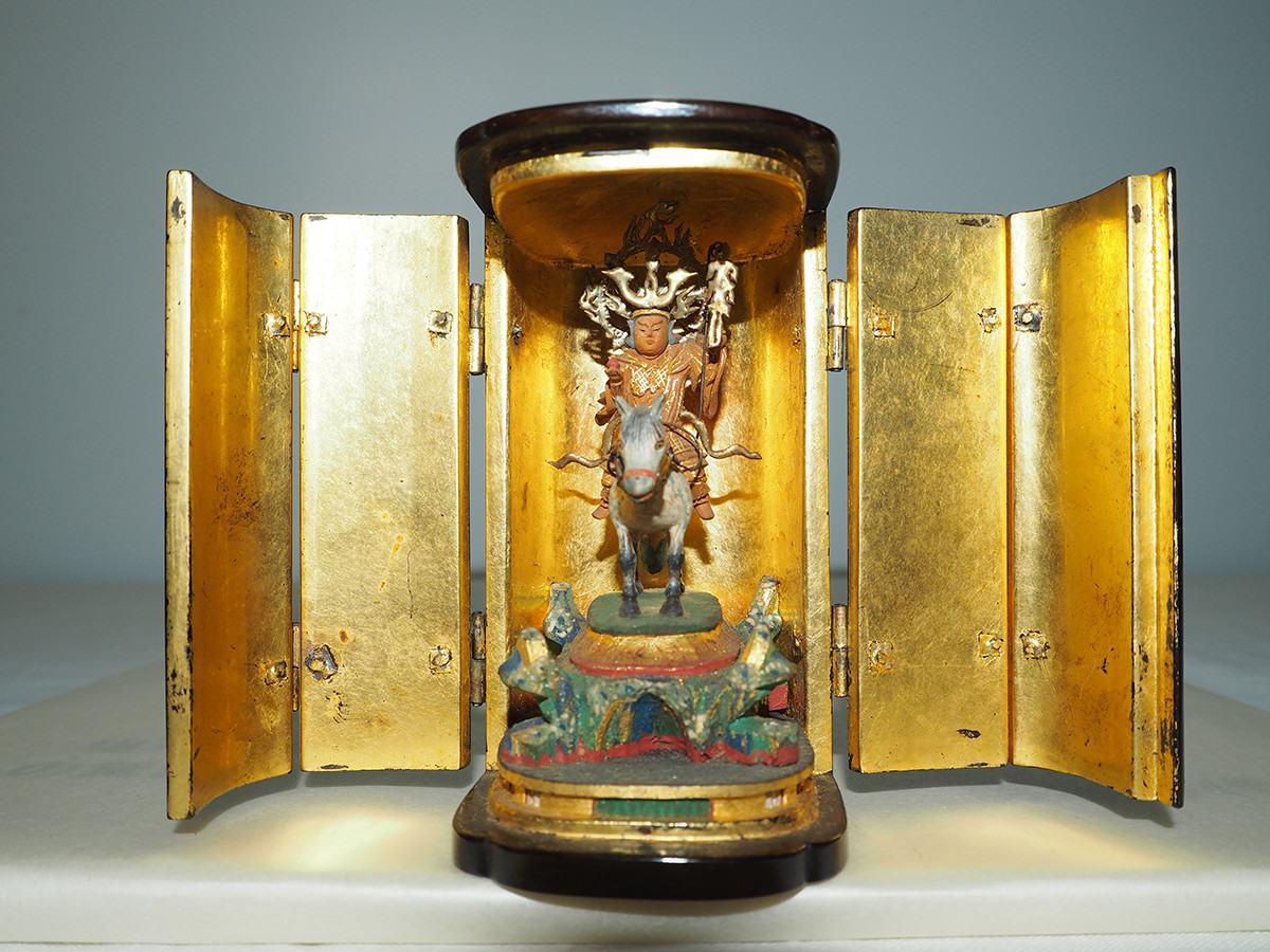 黒塗厨子の両開きの扉を開けると、写真のように中は金箔が貼られ神々しさを感じます。