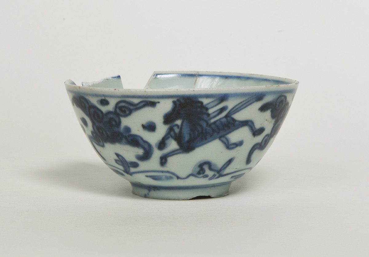 戦国時代の城下町跡である一乗谷朝倉氏遺跡で出土した染付のお碗です。