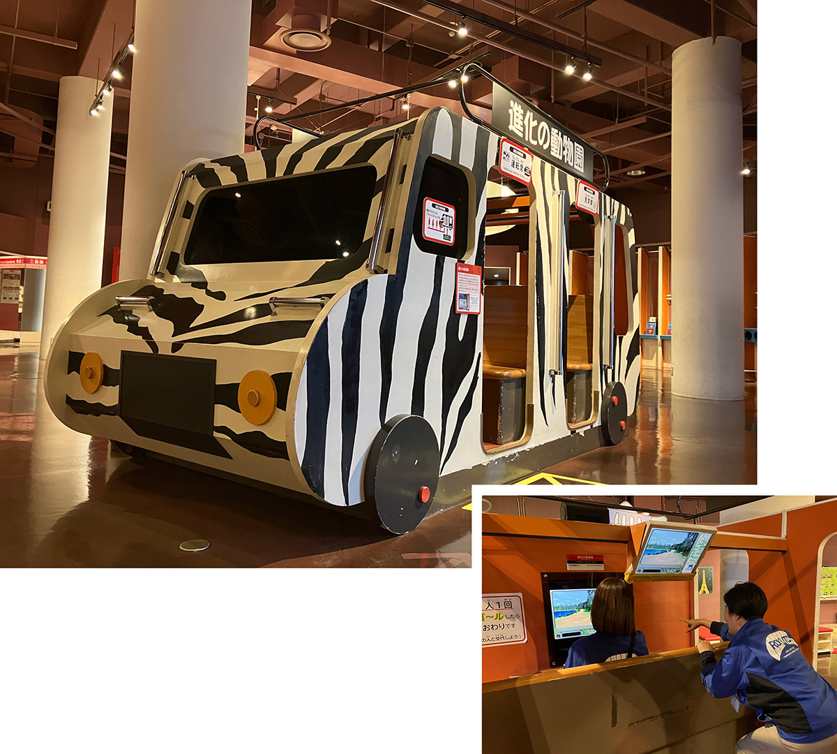 2001年から運用中脊椎動物の進化の系統樹を、“しまうまバス”を運転するシミュレーションゲームの感覚でたどります。ハンドルを操作しながら、生物の進化にどのような変化があったのか見てみましょう。