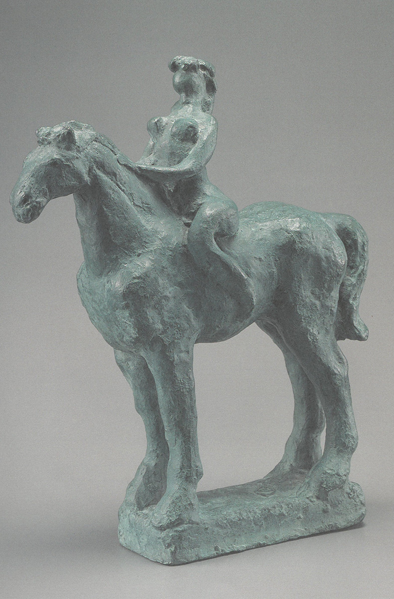 「アマゾーヌ」は1968年に制作された高さ35×幅12×奥行き41センチほどの女性の乗馬姿のブロンズ像である。やや小ぶりながらも木内らしい柔らかくおおらかな造形美が感じられる作品だ。