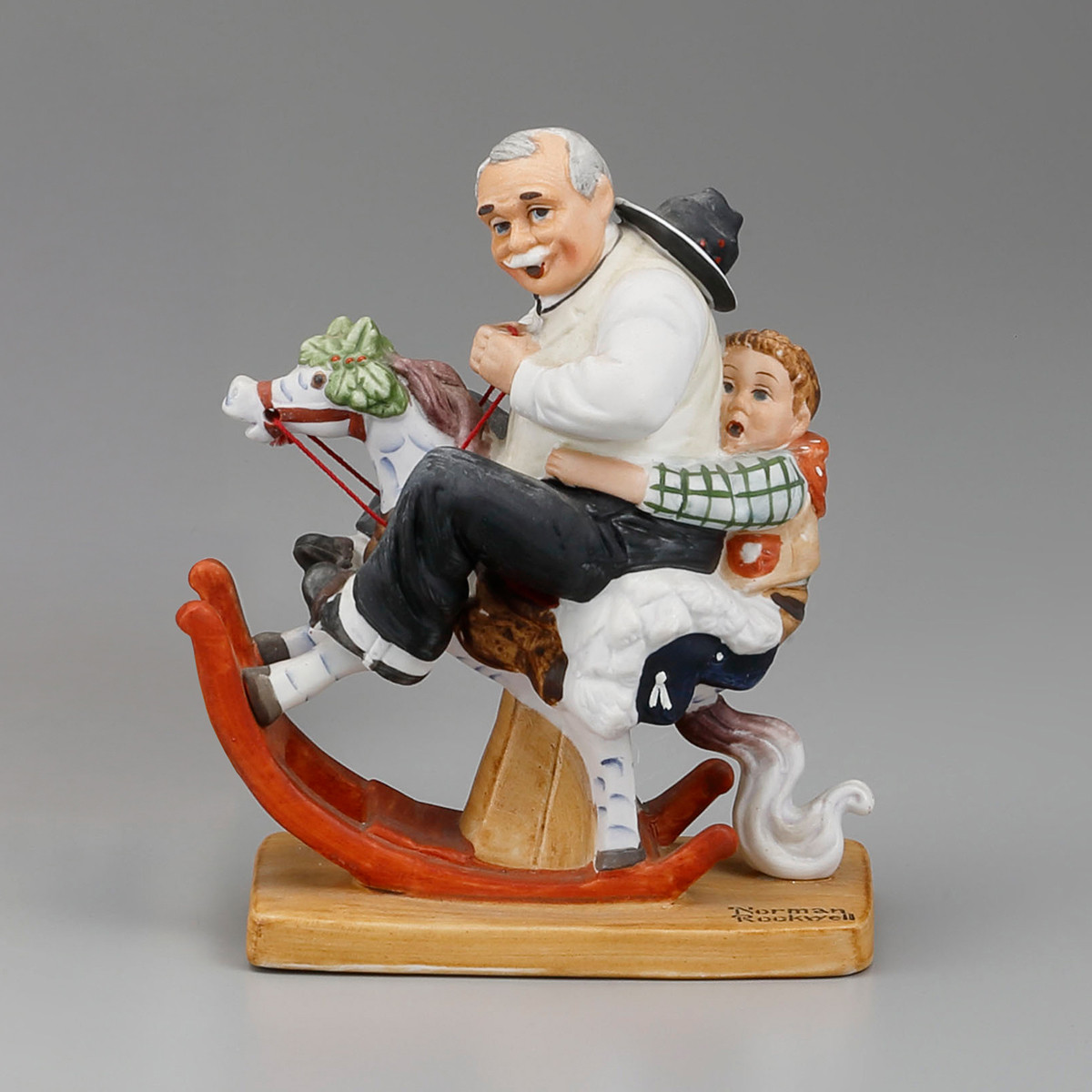 ノーマン・ロックウェルが描いたクリスマスのイラスト「Gramps On Rocking Horse」(1933)を立体化した瀬戸焼の人形。瀬戸でつくられた陶磁器製の人形は、「セト・ノベルティ」とも呼ばれます。