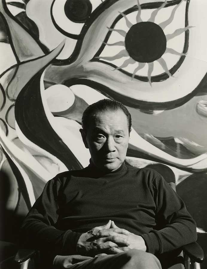 1929年に渡仏した岡本太郎は、抽象表現に影響を受けながら画家としてのアイデンティティを確立していきます。帰国後、自らの芸術理念の核となる「対極主義」を提唱し、制作のみならず『今日の芸術』、『日本の伝統』などの著作において文化・芸術論を展開しました。《太陽の塔》を頂点とするパブリックな空間に展開される巨大な彫刻や壁画など、生活の中で生きる作品群は、「芸術は大衆のものである」という岡本太郎の信念そのものを象徴し、それ故に没後もなお、多くの人々を惹き付けています。