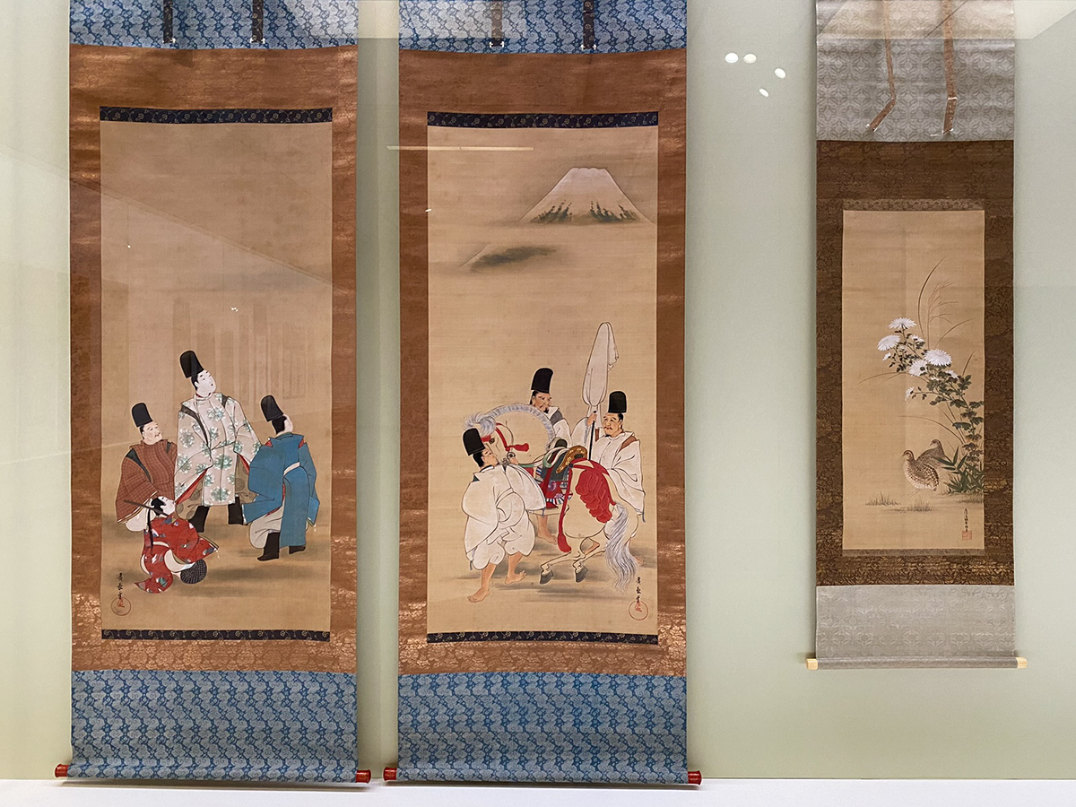 (左から)板谷広長《業平東下図》(対幅) / 土佐光起《菊鶉図》ともに敦賀市立博物館[ともに展示期間:3/14~5/10]