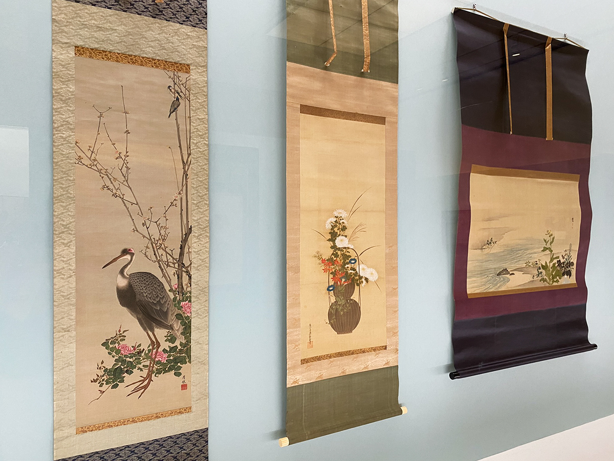 (左から)張月樵《花鳥図》 / 土佐光起《花籠図》 / 原在正《七草図》いずれも敦賀市立博物館[いずれも展示期間:3/14~5/10]