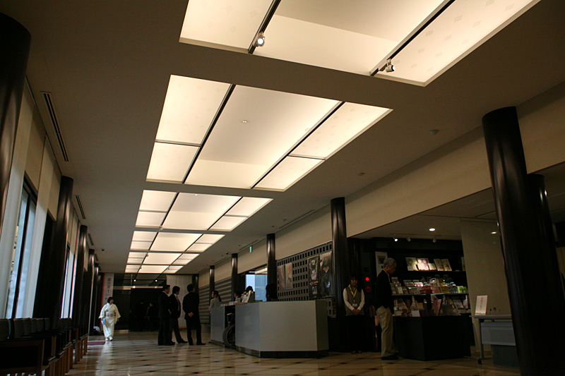 ロビー天井の照明パネルには、平安時代の「朽木文様」の意匠が