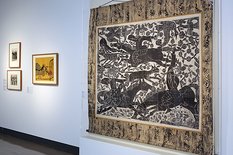(右)棟方志功《華狩頌》