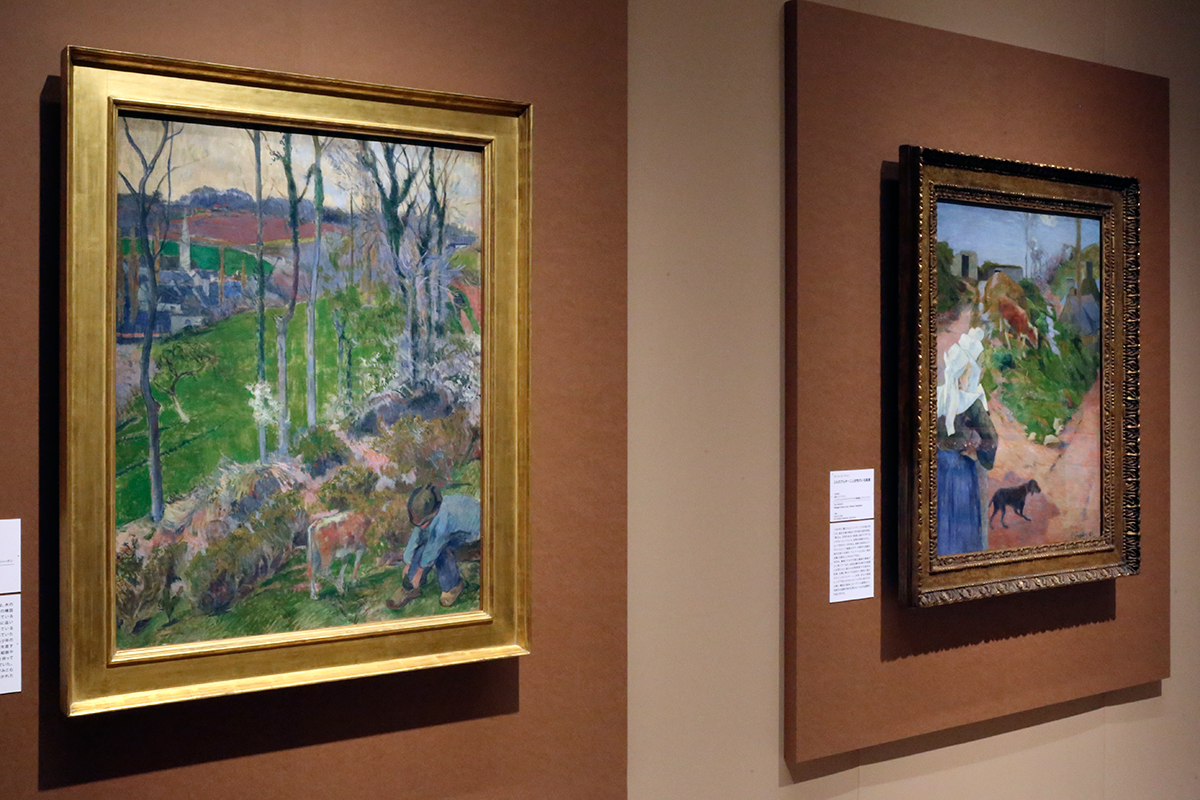 (左から)ポール・ゴーギャン《ブルターニュの眺め》 / ポール・ゴーギャン《2人のブルターニュ女性のいる風景》