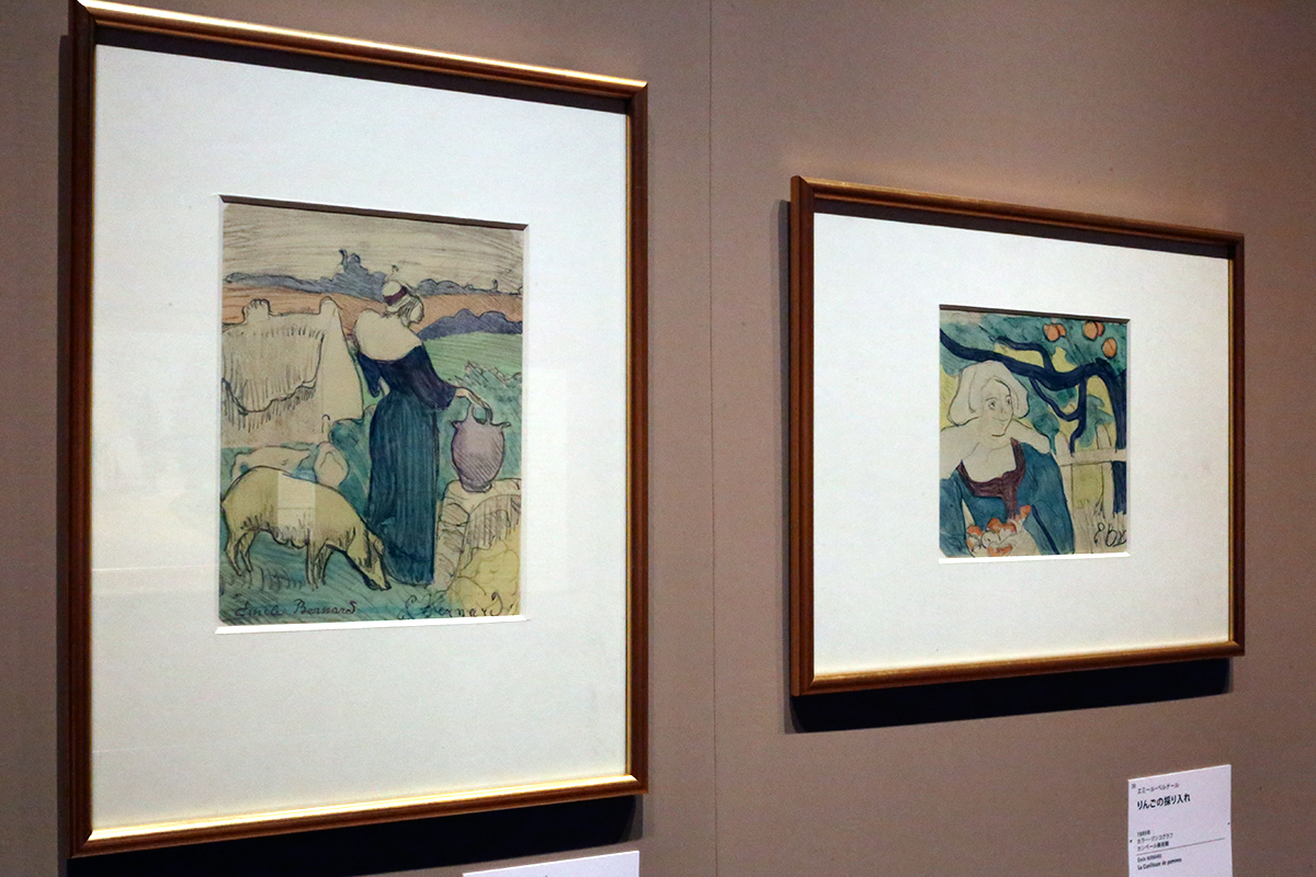(左から)エミール・ベルナール《水瓶をもつブルターニュの女性》 / エミール・ベルナール《りんごの採り入れ》
