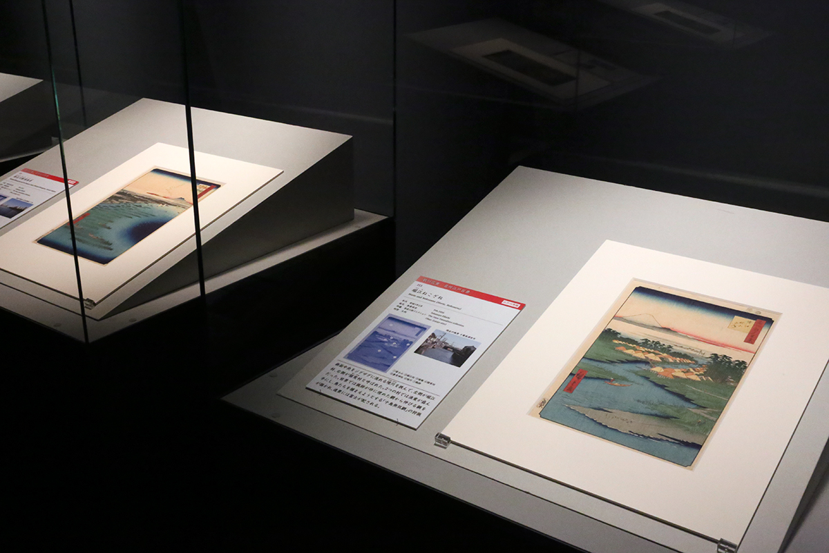 (左から)歌川広重《名所江戸百景 南品川鮫洲海岸》 / 歌川広重《名所江戸百景 堀江ねこざね》