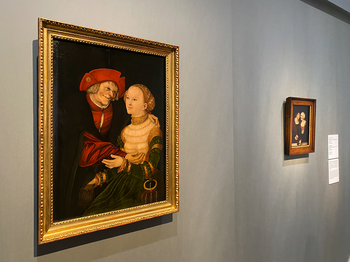 (左手前)ルカス・クラーナハ(父)《不釣り合いなカップル 老人と若い女》1522年 ブダペスト国立西洋美術館
