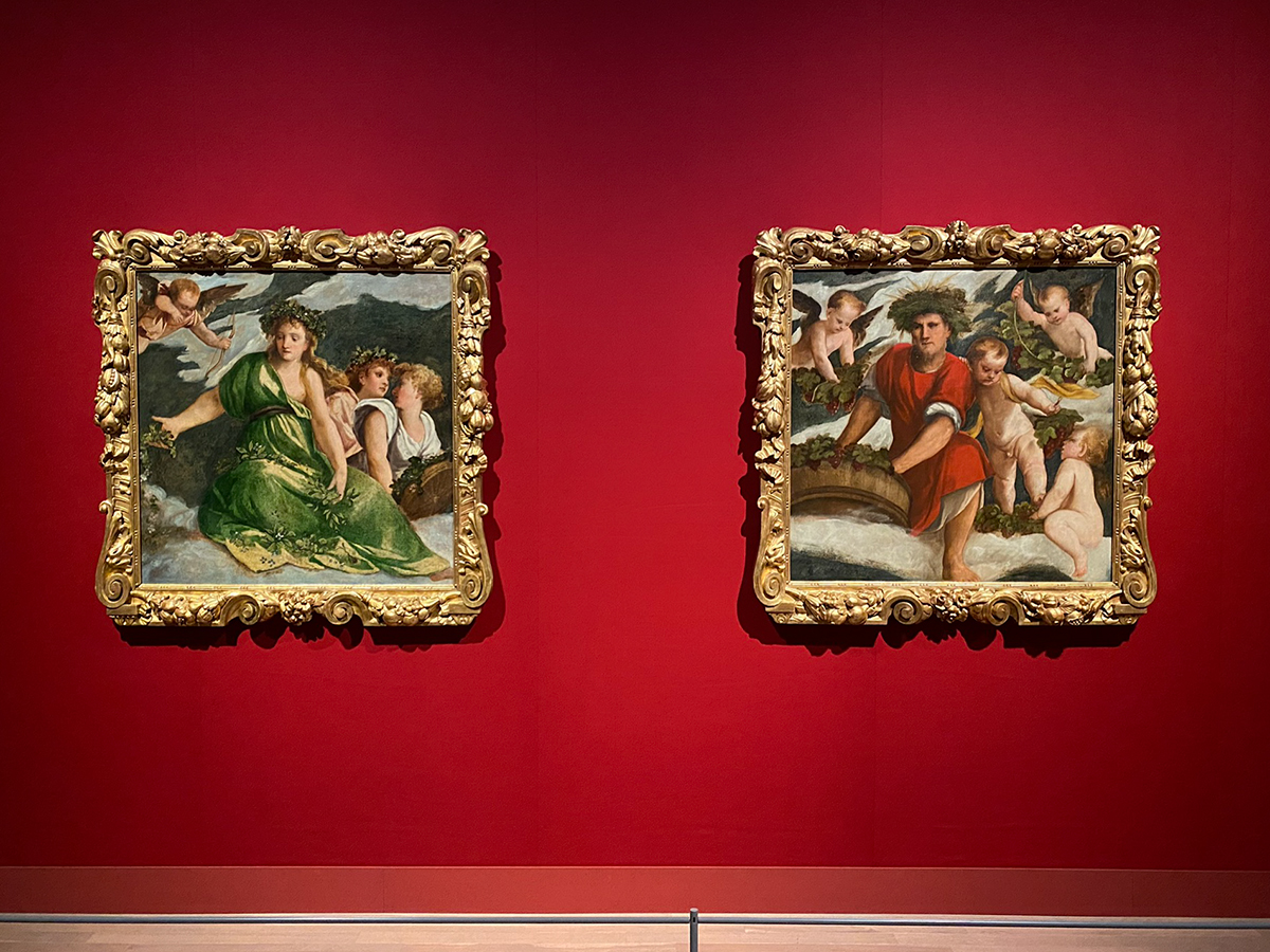 (左から)ボニファーチョ・ヴェロネーゼと工房《春》1530年代/1550年代初頭 ブダペスト国立西洋美術館 / ボニファーチョ・ヴェロネーゼと工房《秋》1530年代/1550年代初頭 ブダペスト国立西洋美術館