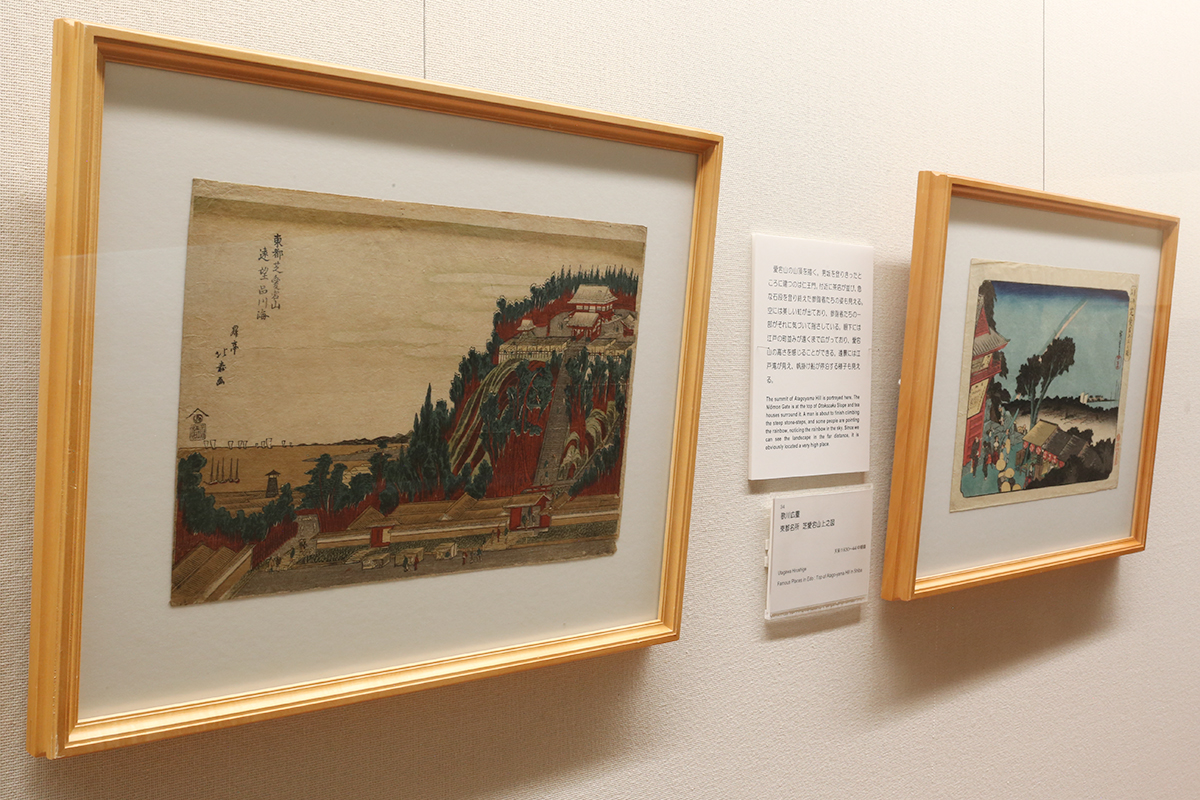 (左から)昇亭北寿《東都芝愛宕山 遠望品川海》 / 歌川広重《東都名所 芝愛宕山上之図》