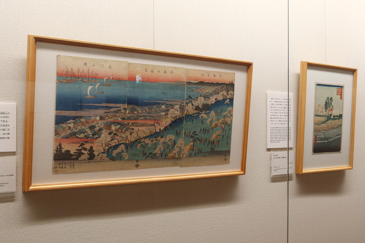 (左から)歌川広重《東都名所 御殿山花見 品川全図》 / 歌川広重《名所江戸百景 品川御殿やま》
