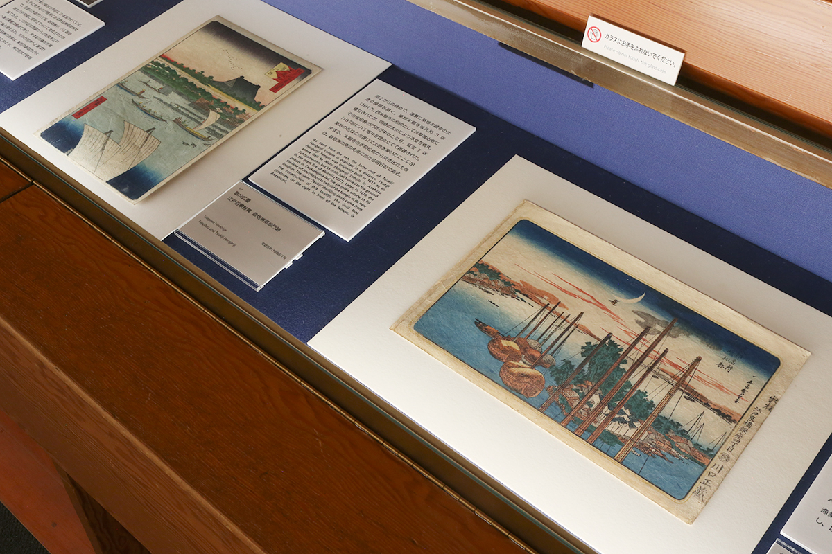 (左から)歌川広重《江戸百景餘興 鉄炮洲築地門跡》 / 歌川広重《東都名所 佃嶋初郭公》