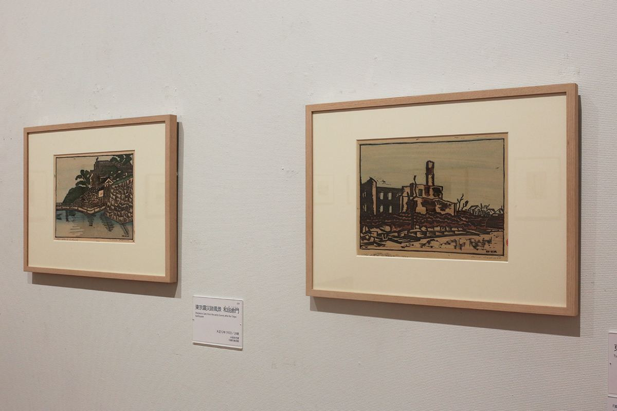 《東京震災跡風景 築地》大正12年(1923) / 《東京震災跡風景 和田倉門》大正12年(1923) ともに千葉市美術館