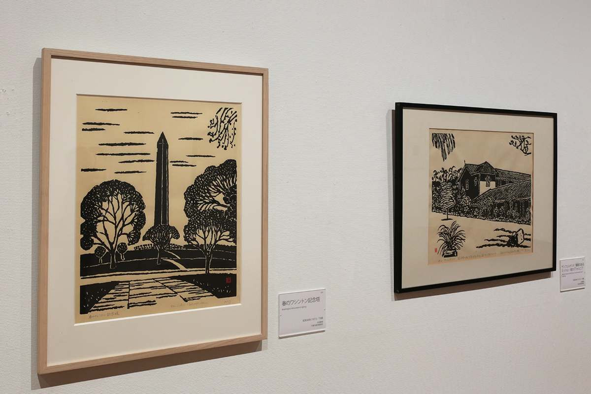 《春のワシントン記念塔》昭和48年(1973) / 《サンフェルナンド鐘楼のあるミッション 南カリフォルニア》昭和48年(1973) ともに千葉市美術館寄託