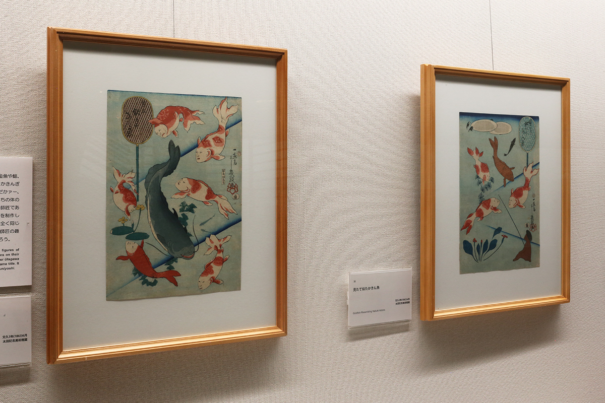 (左から)落合芳幾《見立似たかきん魚》文久3年(1863)6月 / 落合芳幾《見立似たかきん魚》文久3年(1863)6月
