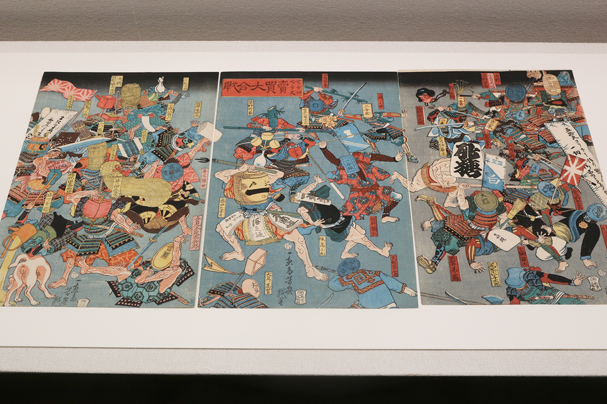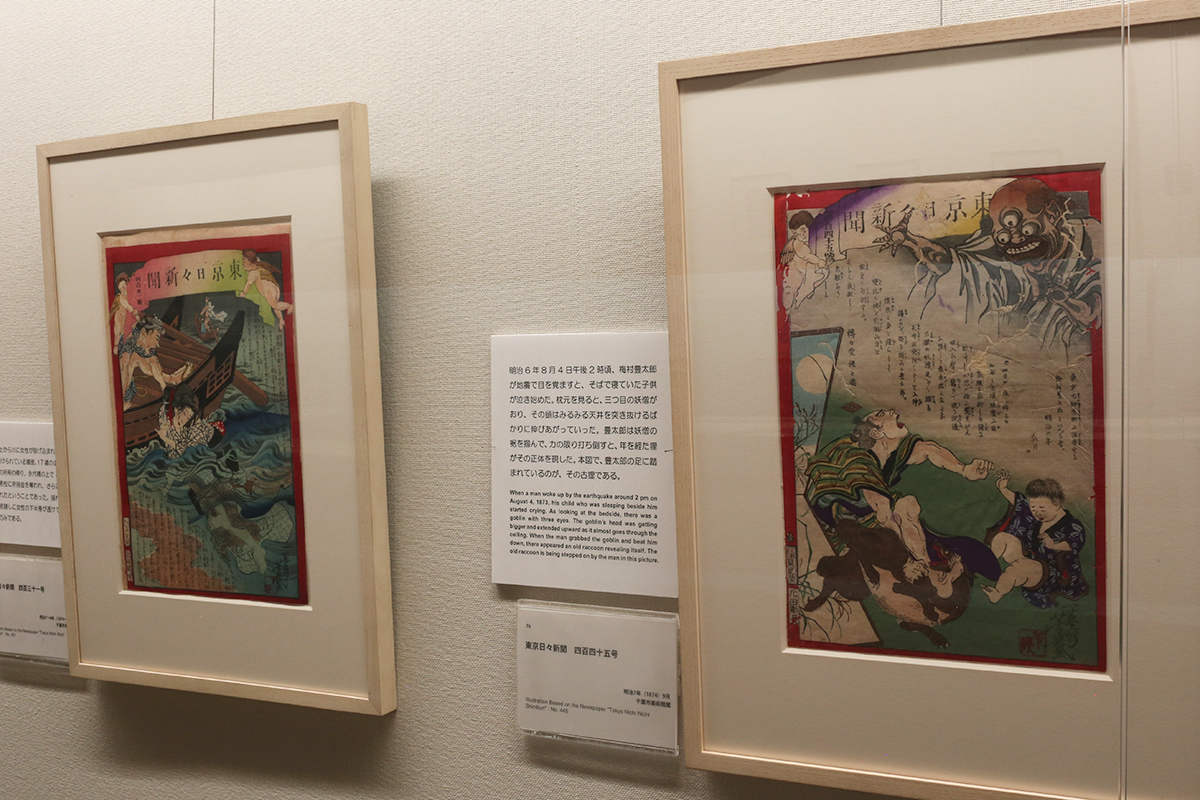 (左から)落合芳幾《東京日々新聞 四百三十一号》明治7~8年(1874~75)頃 千葉市美術館蔵 / 落合芳幾《東京日々新聞 四百四十五号》明治7年(1874)9月 千葉市美術館蔵