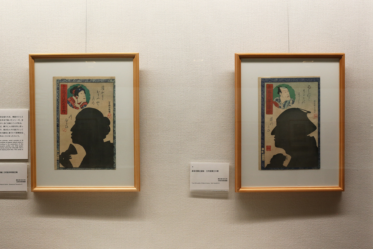 (左から)落合芳幾《真写月花の姿絵 三代目沢村田之助》慶応3年(1867)3月 / 落合芳幾《真写月華之姿絵 三代目関三十郎》慶応3年(1867)3月
