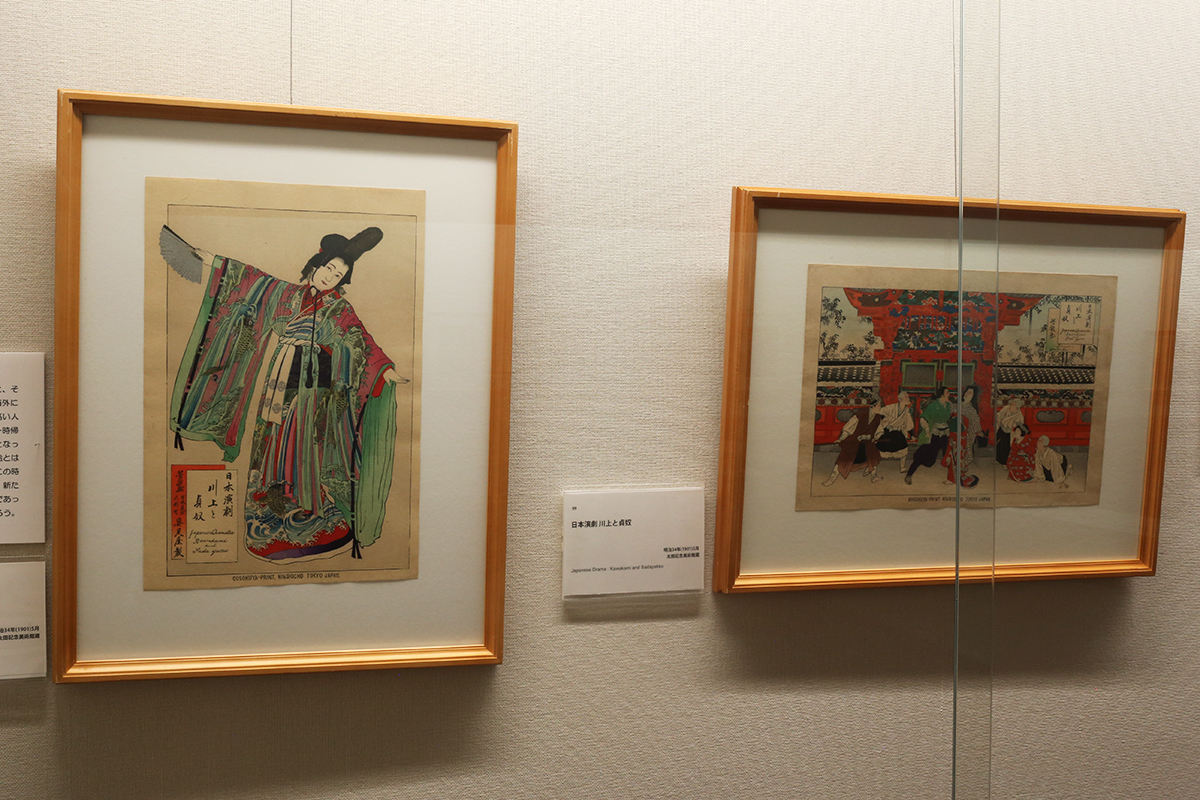(左から)落合芳幾《日本演劇 川上と貞奴》明治34年(1901)5月 / 落合芳幾《日本演劇 川上と貞奴》明治34年(1901)5月