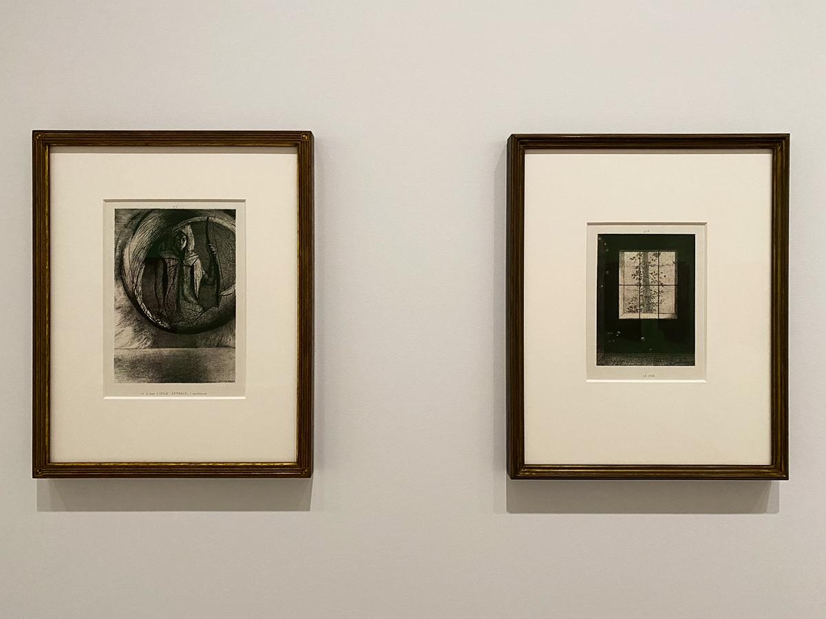 (左から)オディロン・ルドン《Ⅱそして彼方には星の偶像、神格化》1891年 / オディロン・ルドン《Ⅵ日の光》1891年