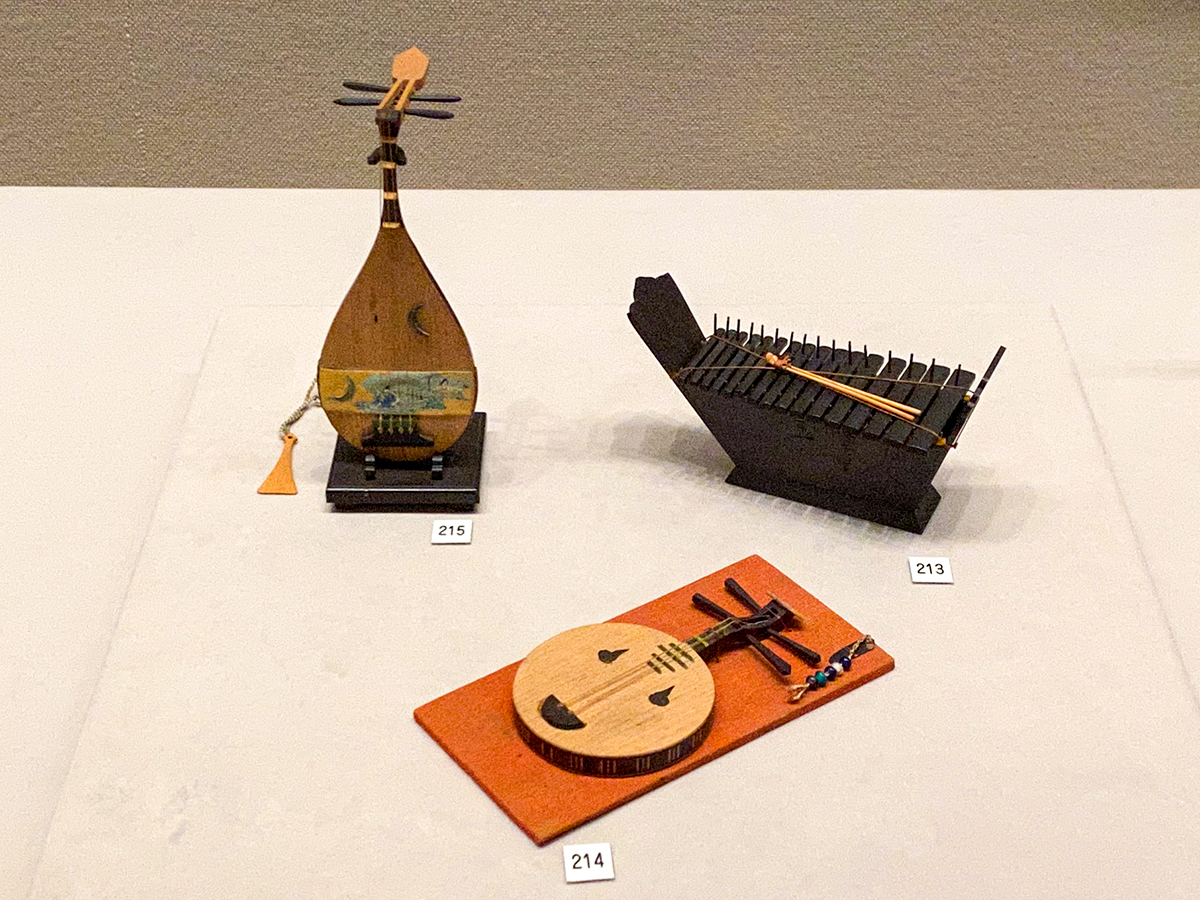 「多彩な雛道具」(下から時計回りで)月琴、琵琶、紫檀木琴 株式会社虎屋
