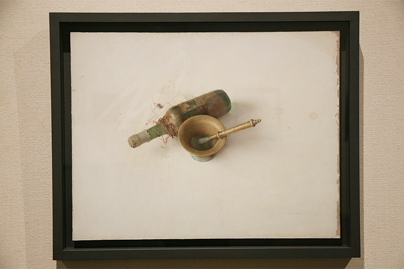 「古酒と擂り鉢」(部分) 2005年 ◇瓶の上に積もった埃まで、徹底的に表現しています