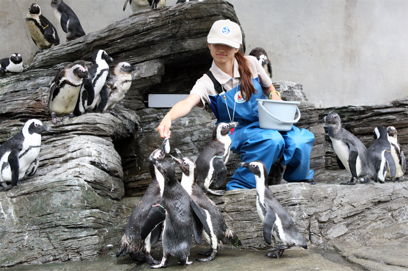 ペンギンビーチで、フィーディングタイム中。