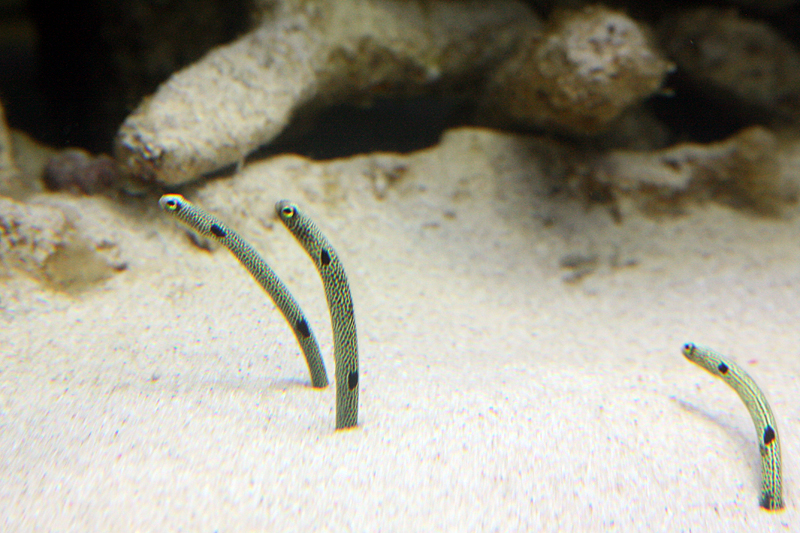 砂からニョキッっと出ているのは、チンアナゴ。お土産グッズにもなっています。