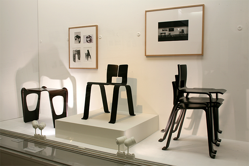 1955年の展覧会で発表された家具。日本での体験を活かしたデザインの家具が出展された。