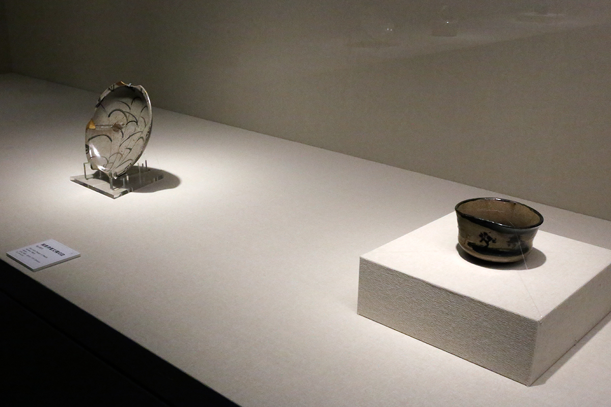 (左から)《絵唐津葦文隅切皿》桃山時代 / 《絵唐津茶碗 銘 松島》桃山時代