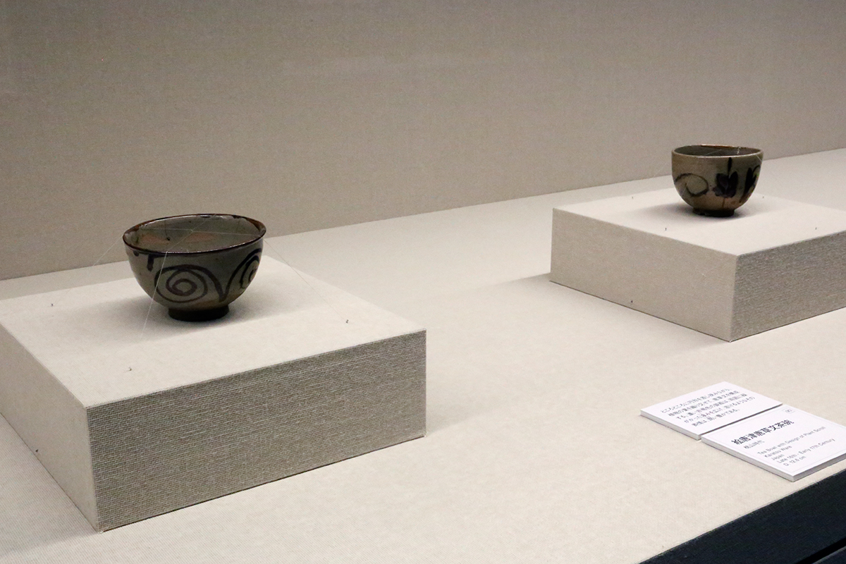 (左から)《絵唐津ぐりぐり文茶碗》桃山時代 / 《絵唐津唐草文茶碗》桃山時代