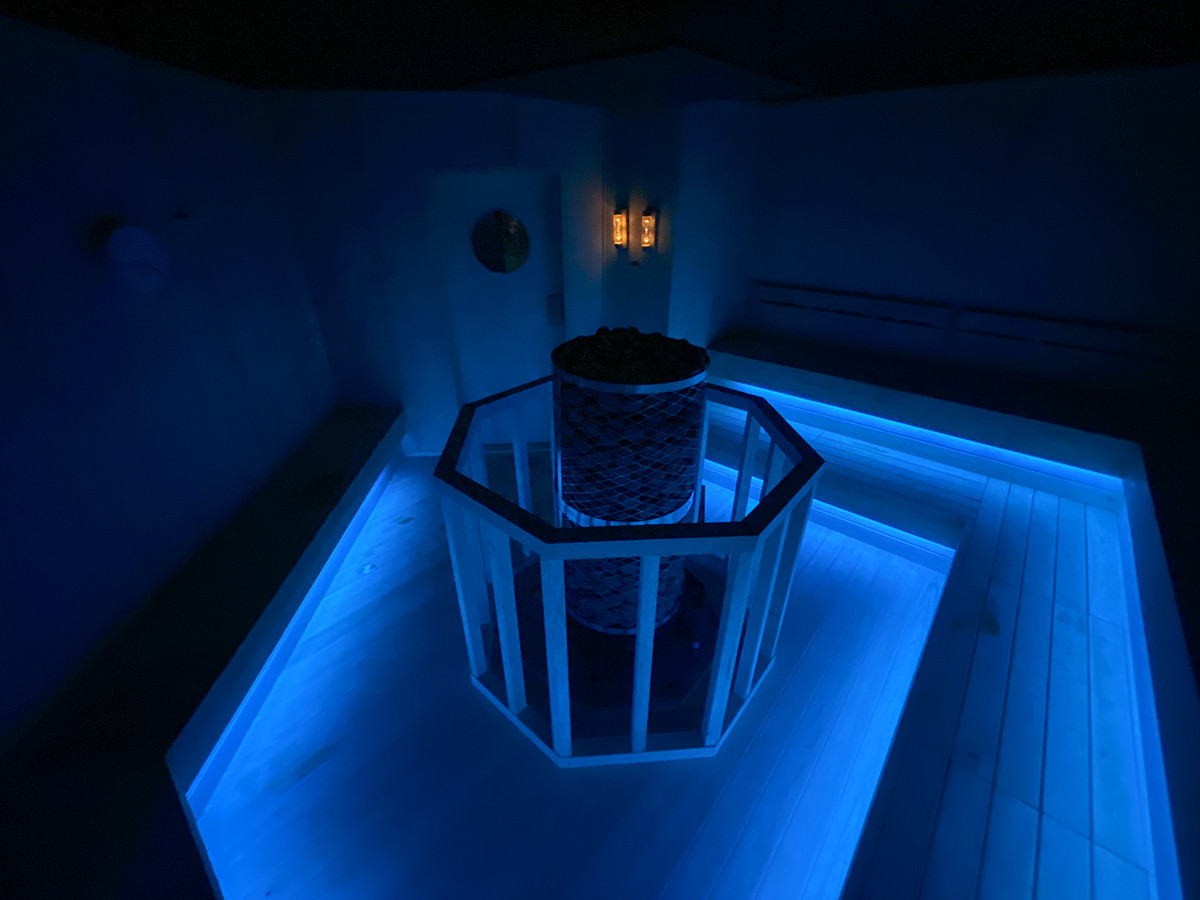 サウナエリア《呼応するランプのアレイとスパイラル・ワンストローク》