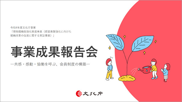 令和4年度文化庁事業「博物館機能強化推進事業(経営基盤強化に向けた組織改革の促進に関する実証事業)」事業成果報告会―共感・感動・協働を呼ぶ、会員制度の構築―