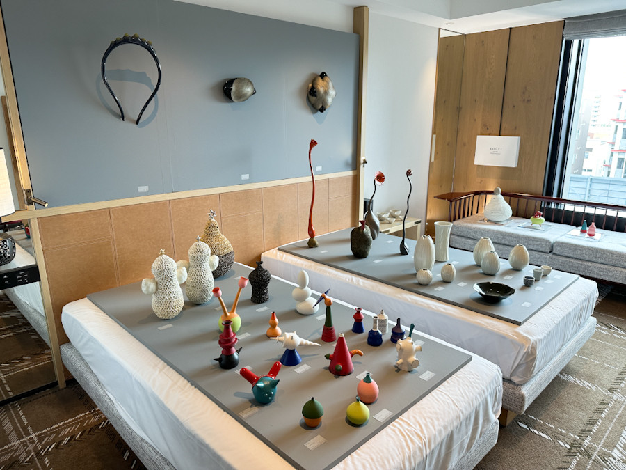 会場はハイアット セントリック 金沢で、2階のイベントスペースと、5階・6階の客室を使用。多くのギャラリーは客室を利用して出展しており、暮らしの中で工芸を感じてもらう事を意識している。