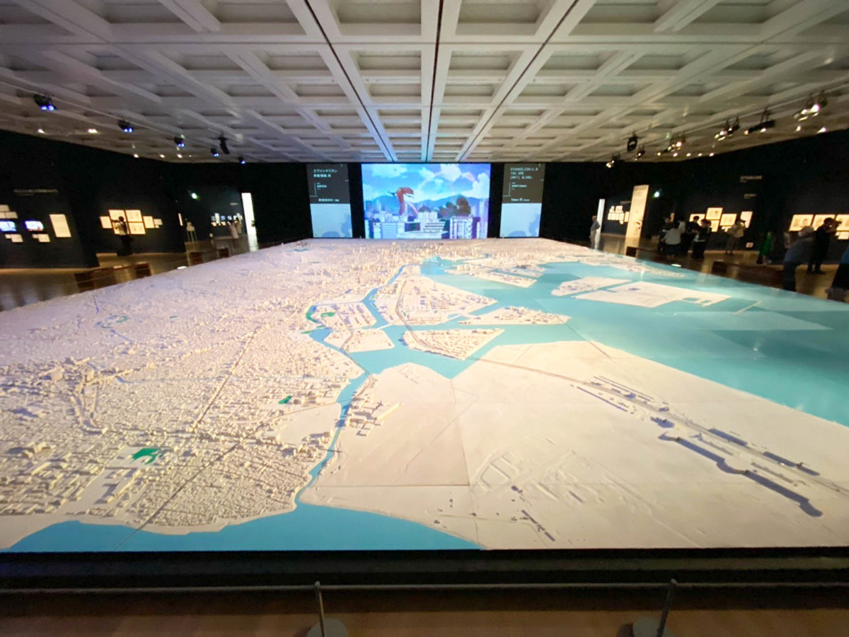 1/1000で再現された、約17×約22メートルの巨大な東京の都市模型とともに、マンガ原画、アニメやゲームの制作資料や映像など、500点超を展示する。