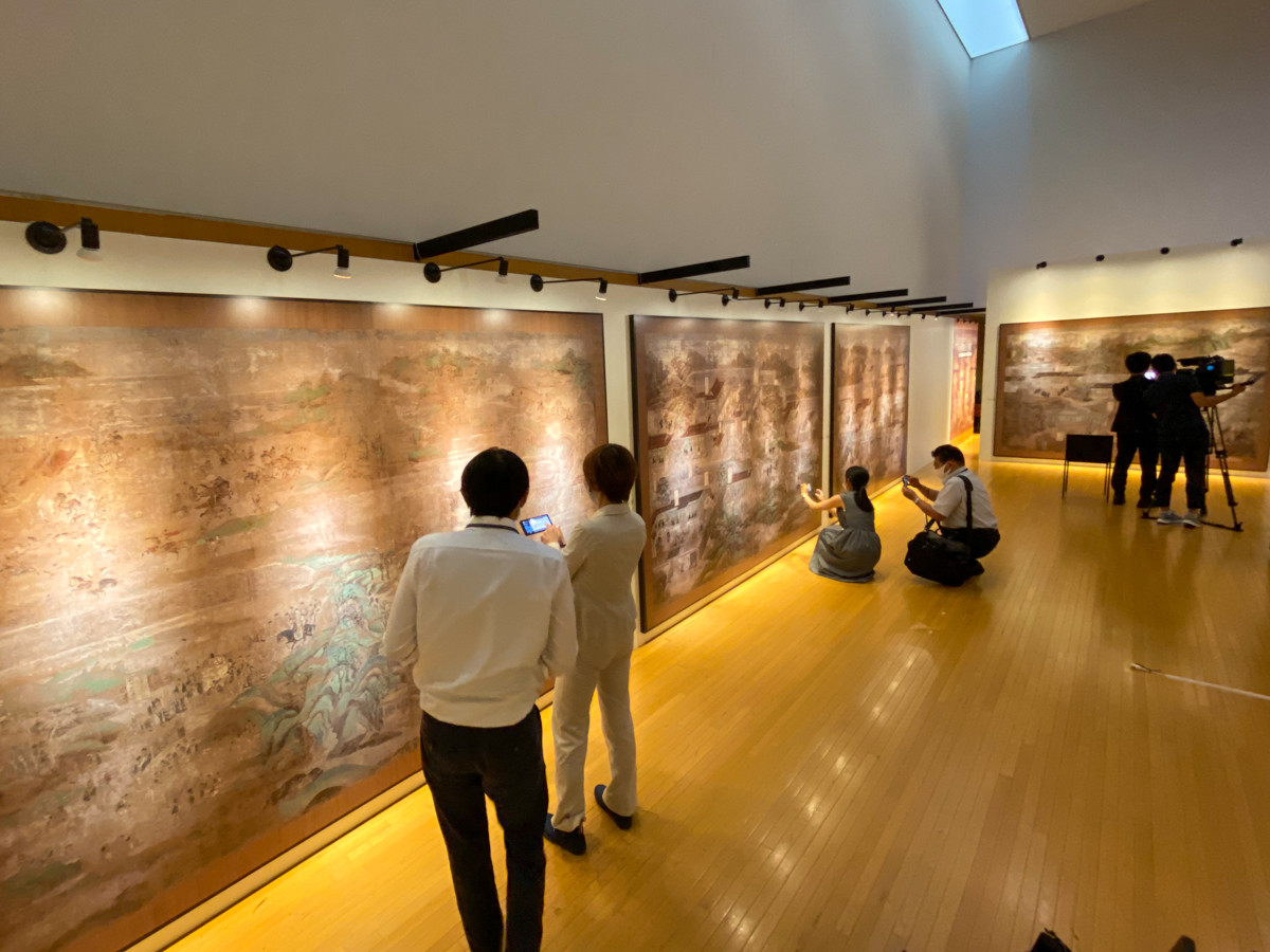実際の絵伝は長い年月を経て画面が痛んでおり、ケース越しでは細かい描写を鑑賞する事が困難。パネルに近寄って見ても、絵が欠損している部分もあるため、初心者では見どころがどこなのかも分かり辛い。