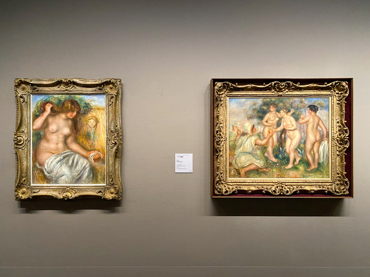 第1章「19世紀後半、ルドンとトゥールーズ=ロートレックの周辺」 (左から)ピエール=オーギュスト・ルノワール《麦藁帽子の若い娘》1888-90年頃 三菱一号館美術館 寄託 / ピエール=オーギュスト・ルノワール《長い髪をした若い娘(あるいは麦藁帽子の若い娘)》1884年 三菱一号館美術館 寄託