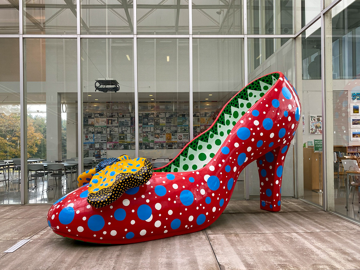 アートホールの中にあった、草間彌生《赤い靴》
