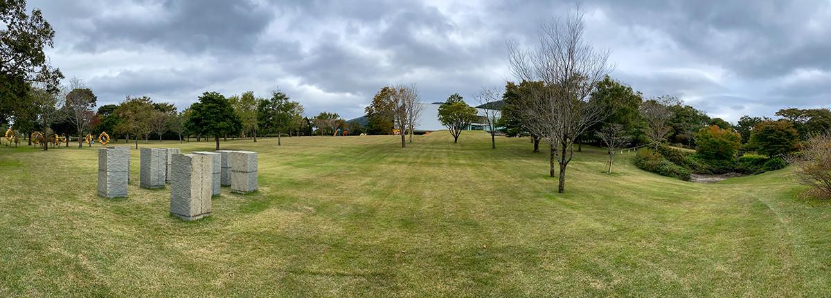 施設の核といえるのが、広大な敷地に点在する野外彫刻。パノラマで撮影してみました。雰囲気が分かるでしょうか。