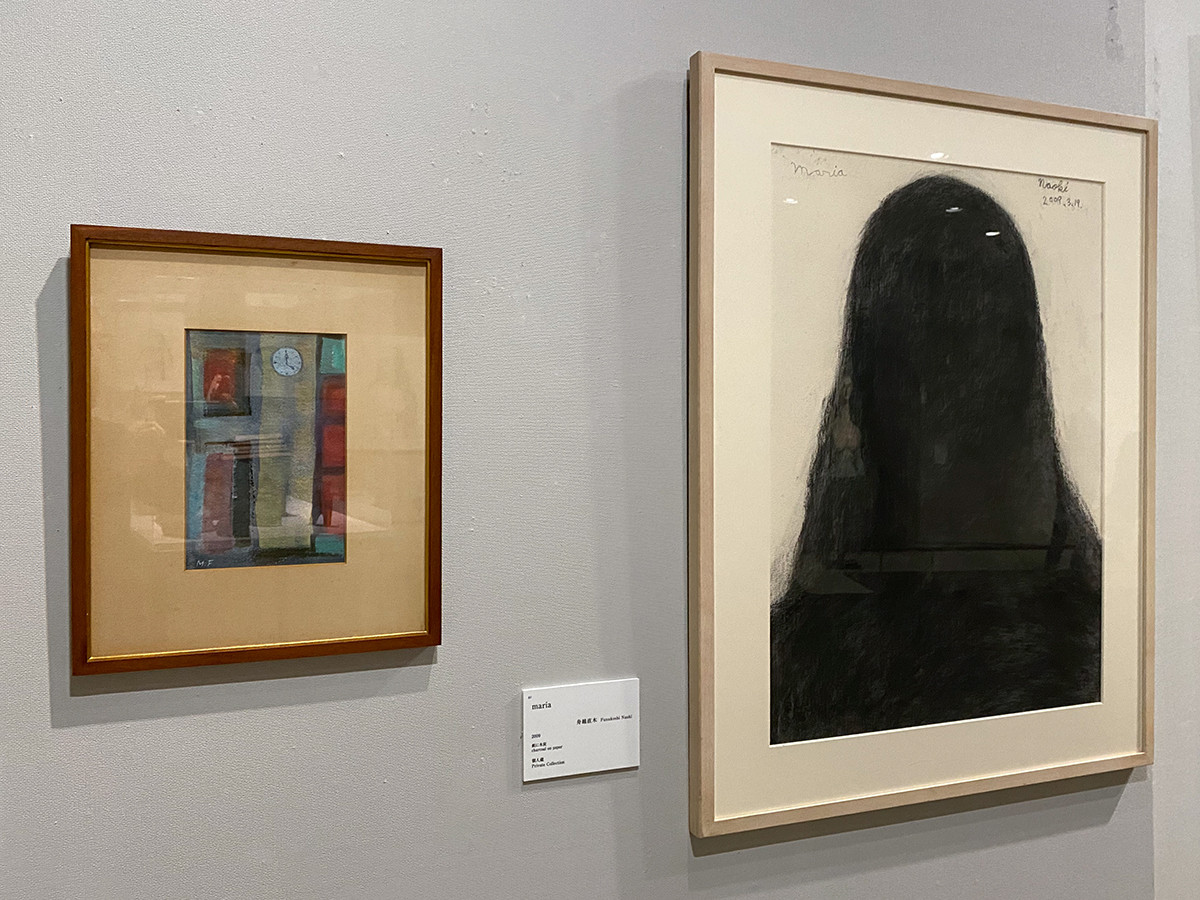 (左から)舟越道子《しづかな町で長生き時計が鳴る》1977 作家蔵 / 舟越直木《maria》2009 個人蔵