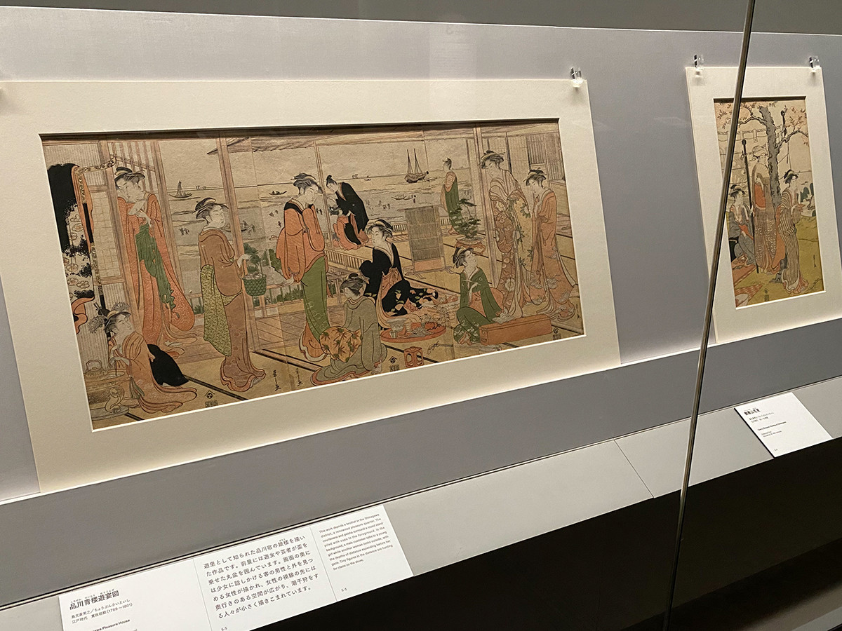 (左手前から)鳥文斎栄之《品川青楼遊宴図》江戸時代 寛政初期(1789 ~1801) / 鳥文斎栄之《御殿山花見》江戸時代 18~19世紀[ともに展示期間:12/16~1/18]