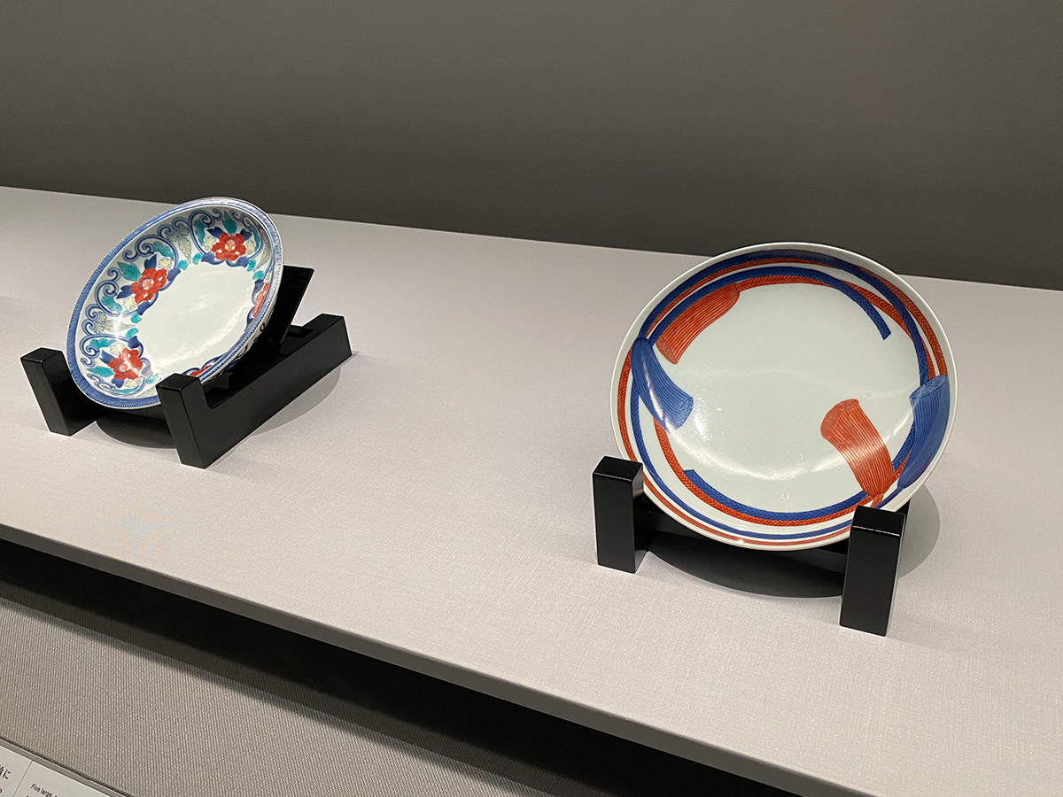 (左から)《色絵牡丹文皿》江戸時代 17~18世紀 / 《色絵組紐文皿》江戸時代 17~18世紀
