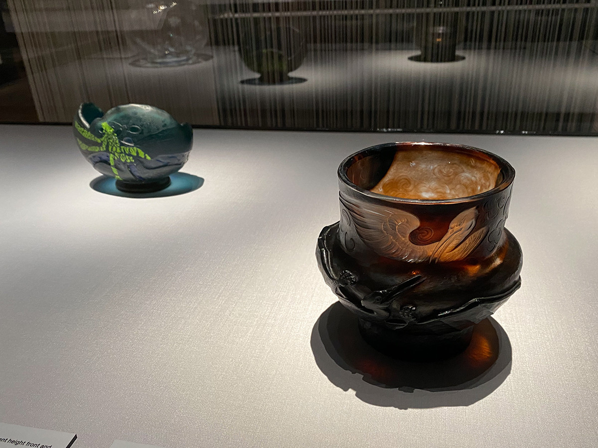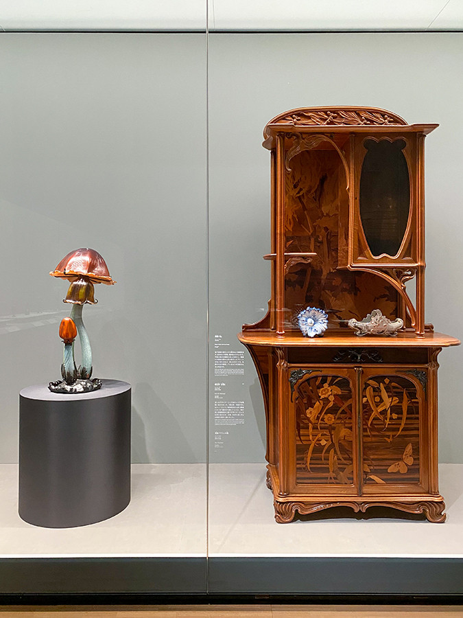 そして最後は第6章「異文化を独自の表現に昇華したガレ」。エミール・ガレは、アール・ヌーヴォー期を代表するフランスの芸術家。アール・ヌーヴォーでは、従来は「小芸術」とみなされてきた家具、食器、照明などにも目が向けられ、空間全体が総合的にデザインされました。